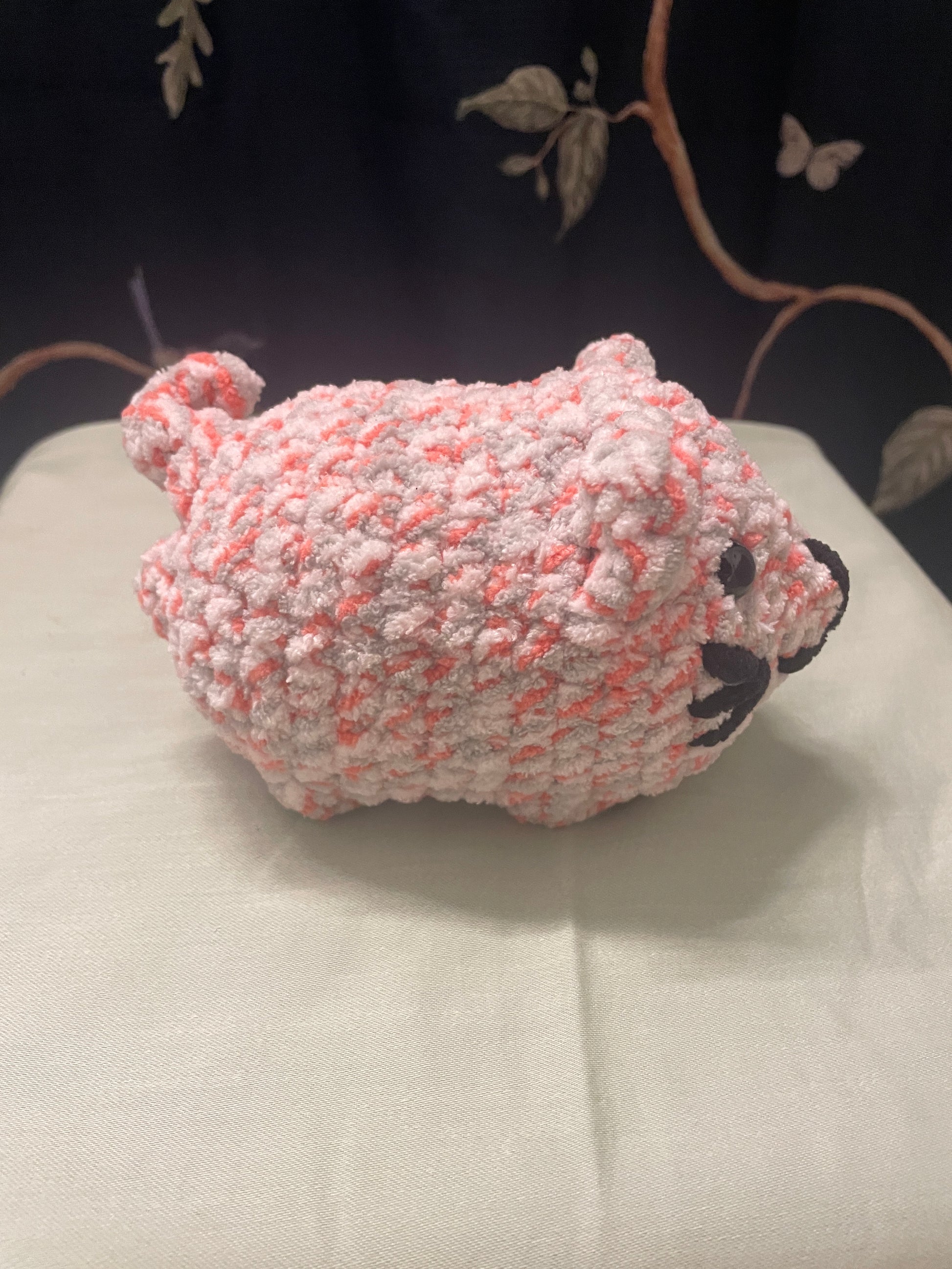 This jumbo cat is handmade with love, using the softest chenille yarn you could imagine. It measures to be about 14cm long and 9cm wide.