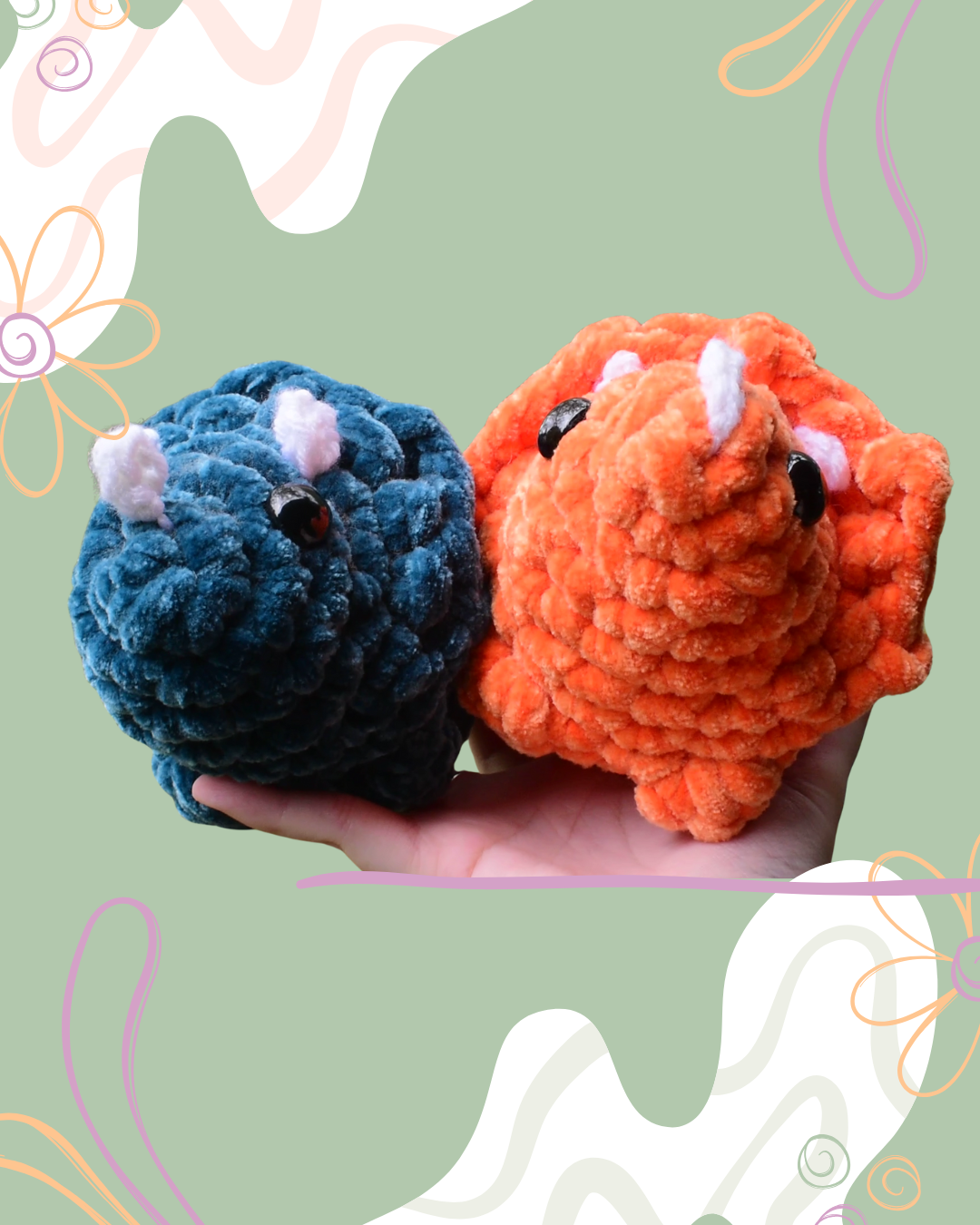 Adopt this cute crochet jumbo triceratops! This product is a perfect gift for friends, family or even yourself! Have it as a desk buddy, or a cuddly toy for the youngsters!