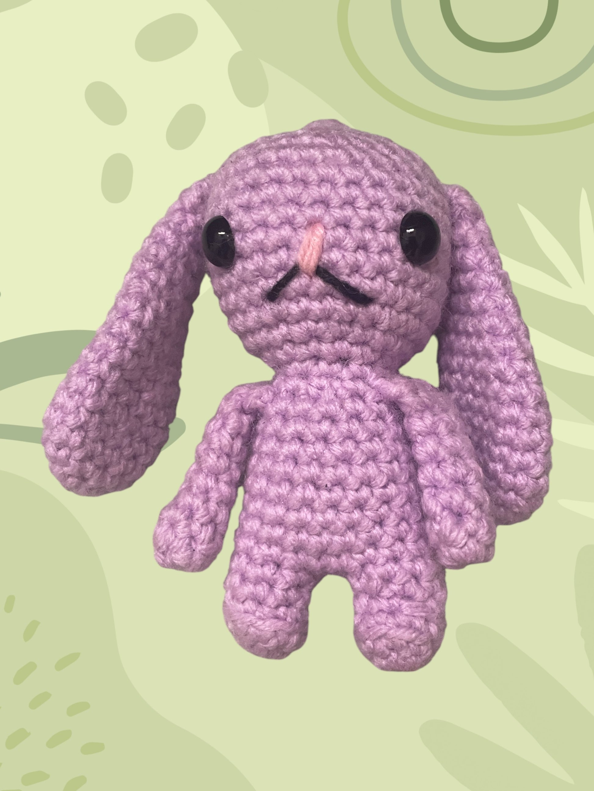 Adopt this cute crochet purple bunny! This product is a perfect gift for friends, family or even yourself! Have it as a desk buddy, or a cuddly toy for the youngsters!