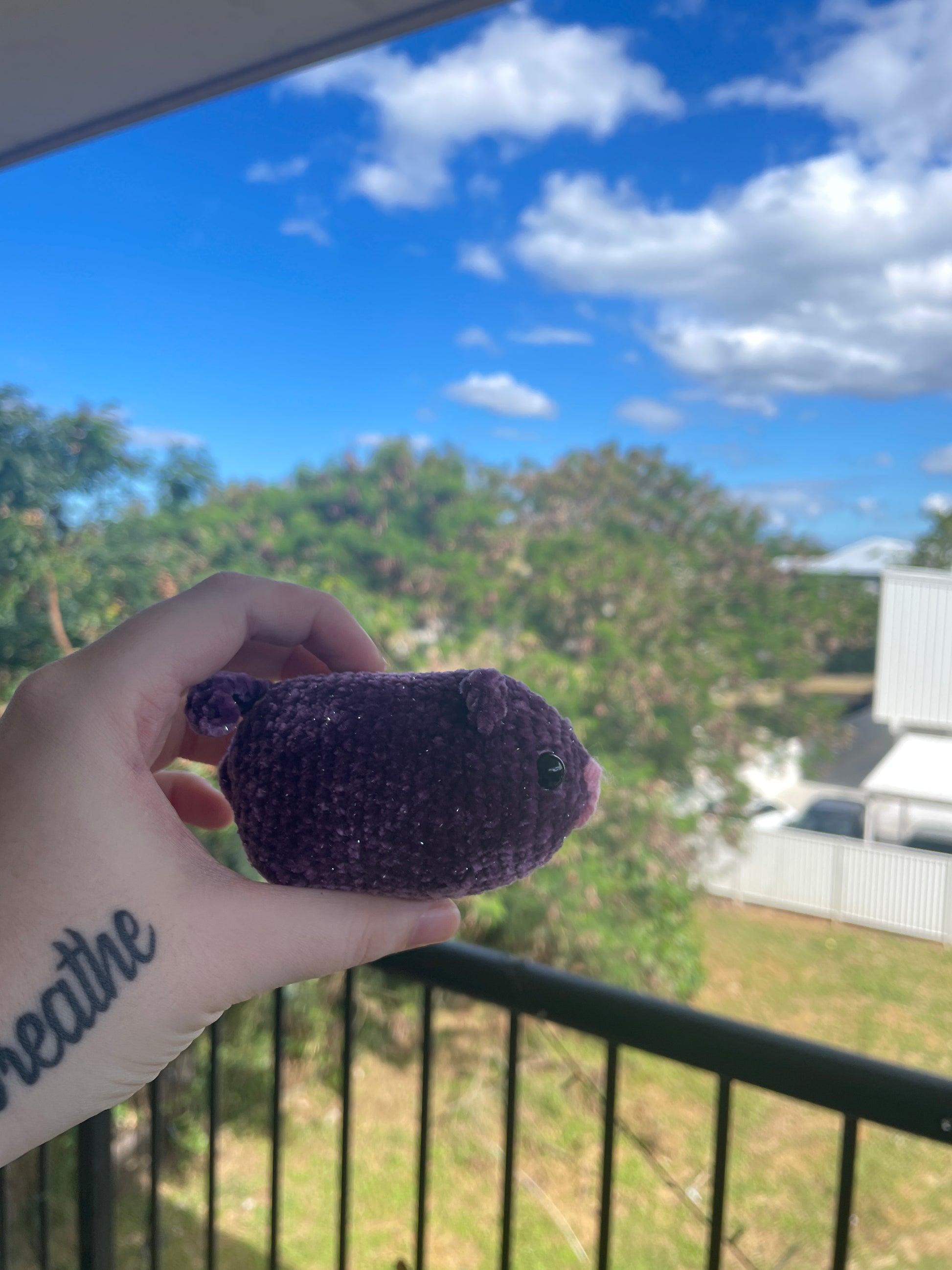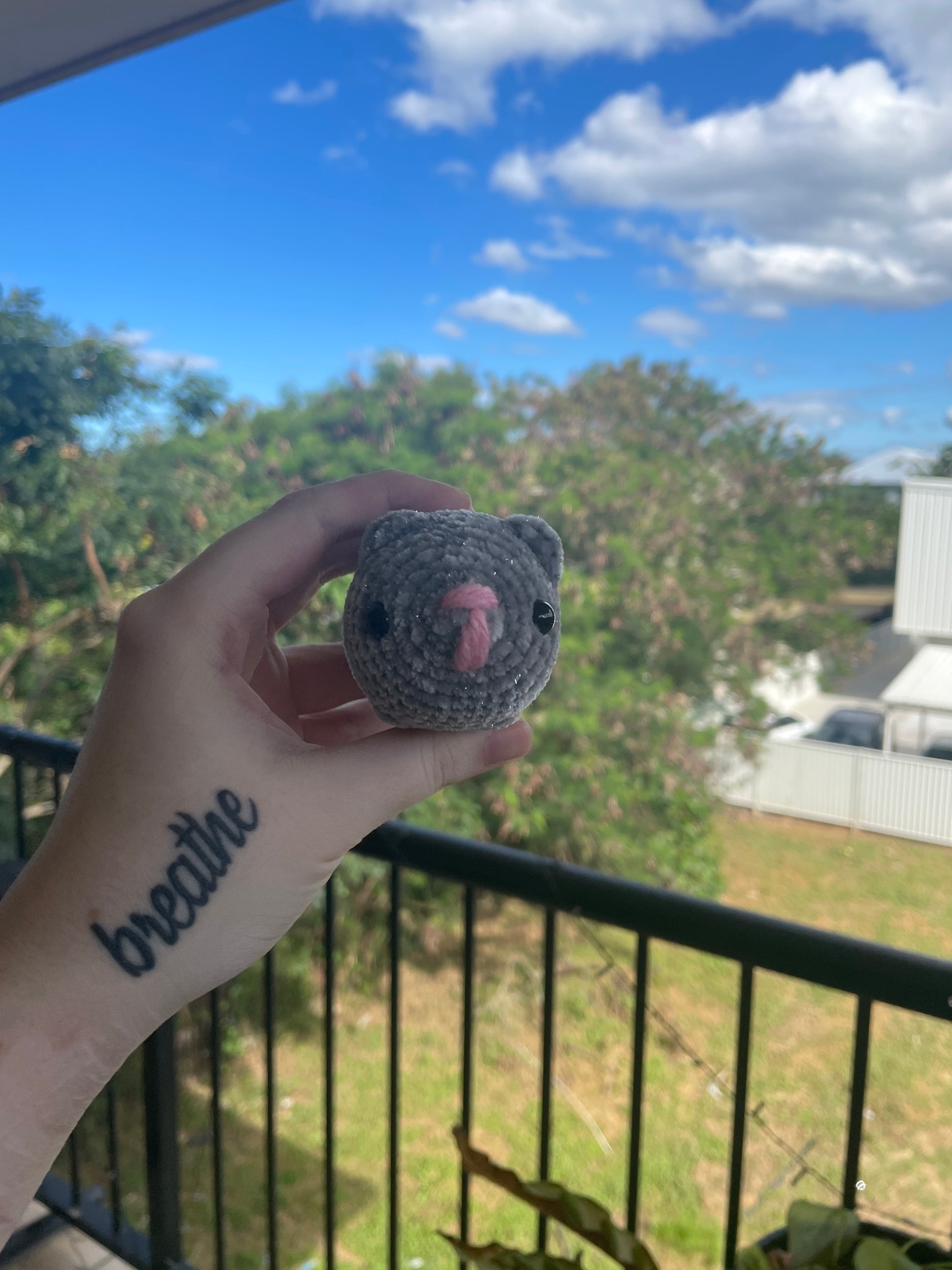 Adopt this cute crochet velvet cat! This product is a perfect gift for friends, family or even yourself! Have it as a desk buddy, or a cuddly toy for the youngsters!